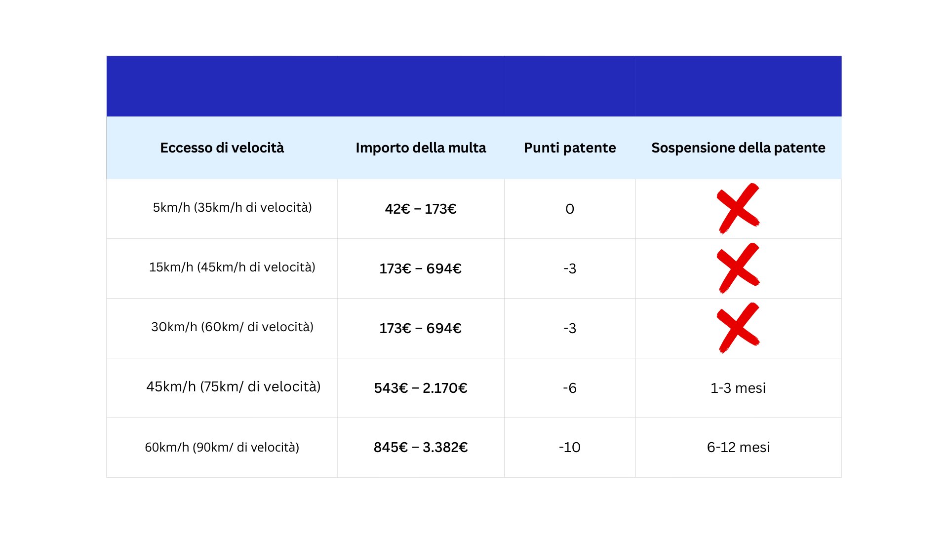 Di seguito una tabella che spiega l'importo delle multe a cui si andrebbe incontro: